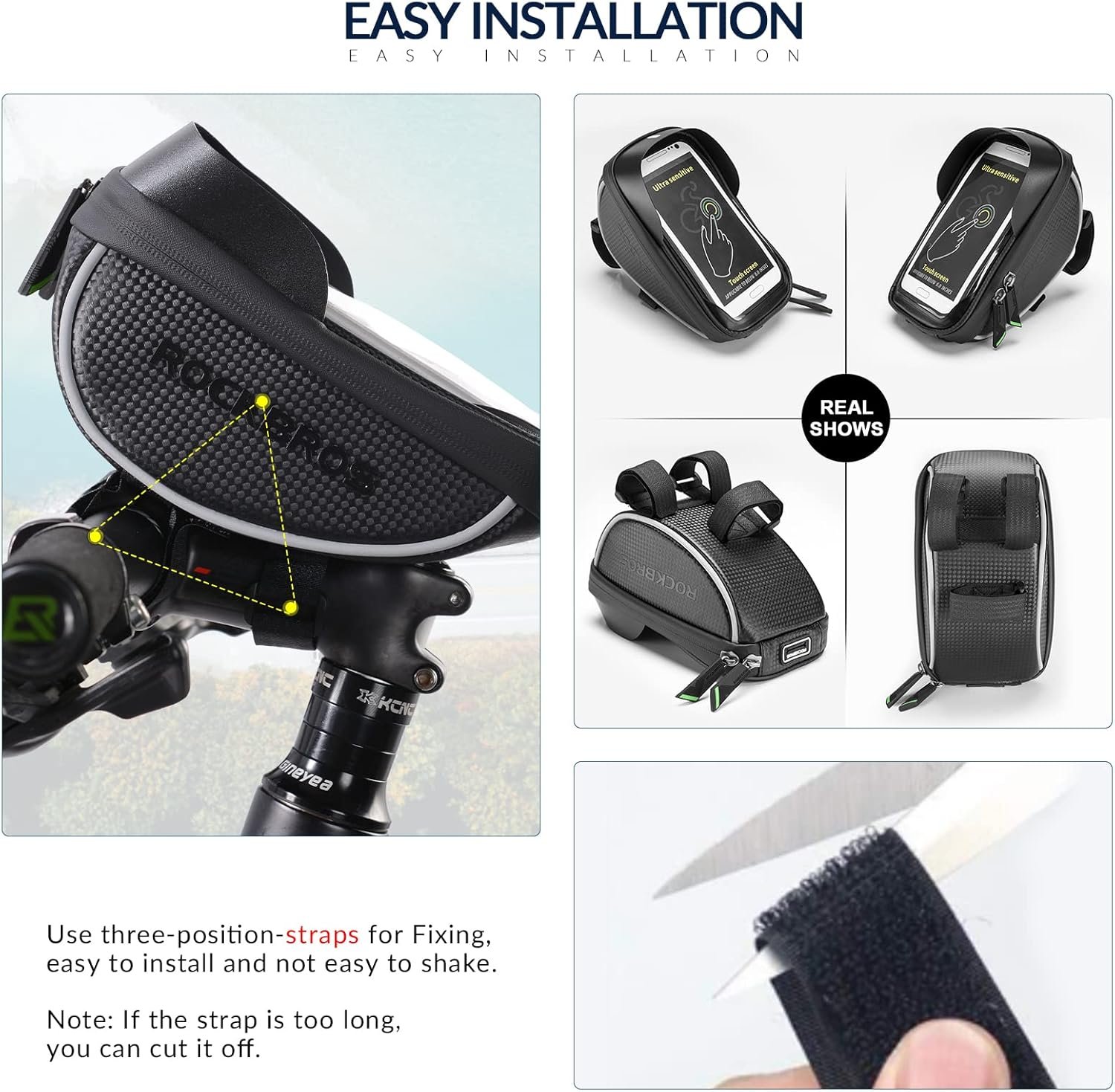 EASY TO INSTALL AND USE: strap design make this bike phone bag can be install and release quickly by hands, No tools required! Suitable for a variety of bicycles.