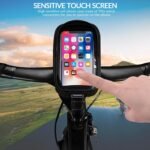 WATER RESISTANT CARBON PHONE MOUNT:The bike phone bag use the water resistant material + High seamed workmanship process you a dual waterproof bike bags ( ensure your Headphone plug is closed )