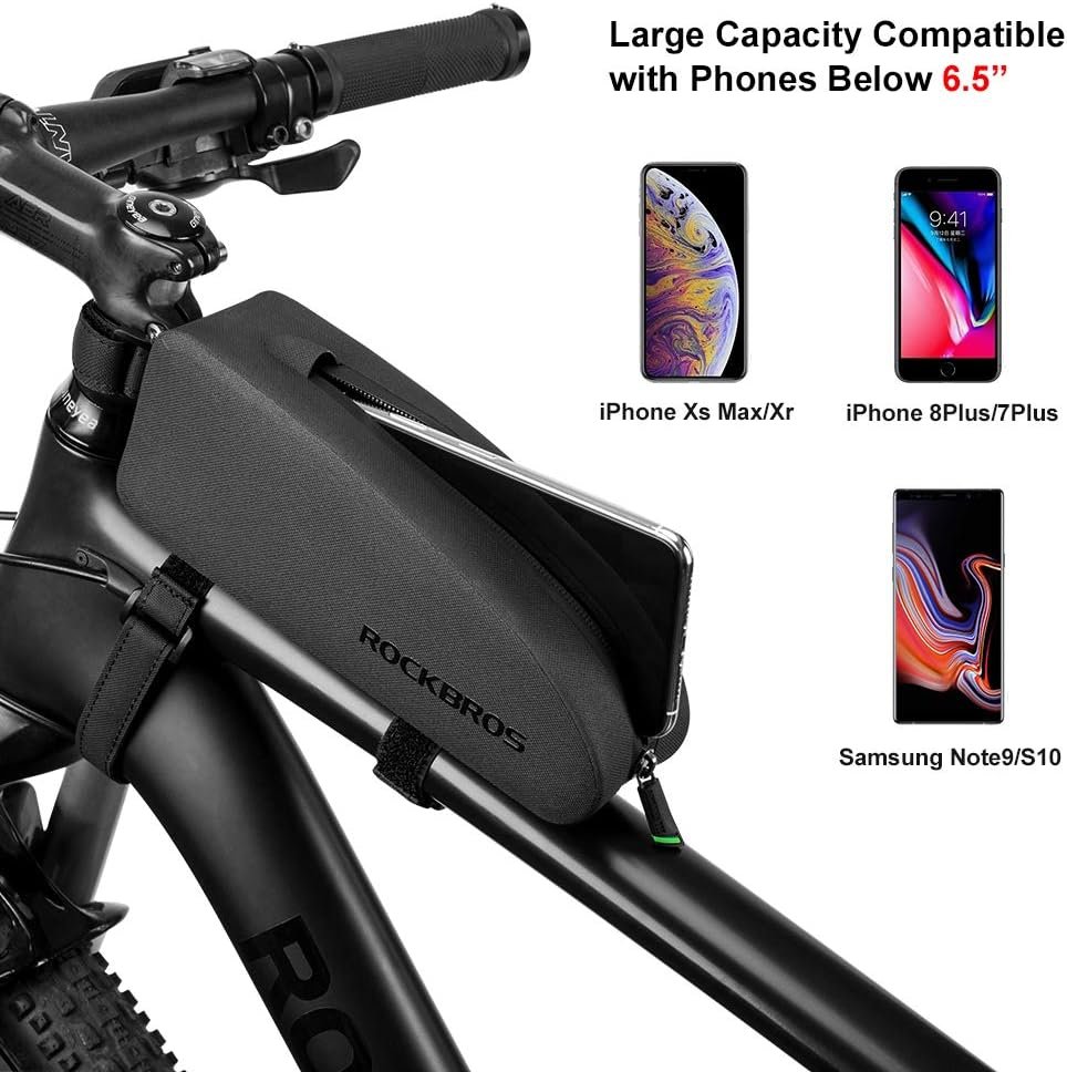 ROCKBROS Bike/Bicycle Phone Front Frame Bag, Waterproof, Tube Bag,Cycling Pouch, Bike Accessories for Men Compatible Phone Under 6.5”