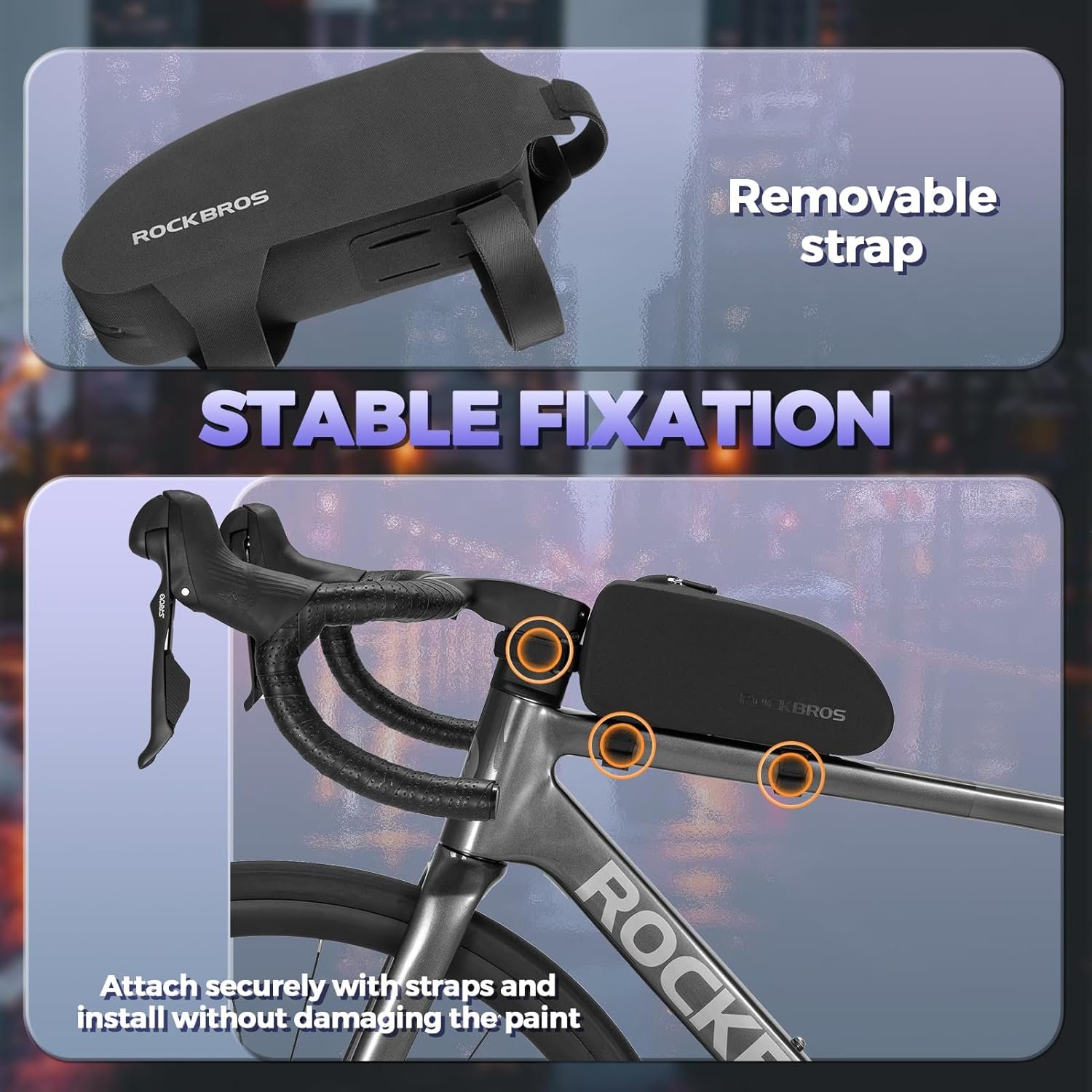 EASY TO INSTALL: Adjustable hook and loop design, suit for more size MTB road bikes. Install and release the top tube bag quickly and without any tools