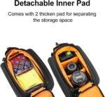 Compatible with Taillights & Water Bottle Holder: A spot in the rear bike rack bag to attach an tail light and high visibility stripes on the side, increase safety at night. Outside water bottle pocket with a cord to tighten which is helpful over rough roads. Come with a bright and reflective rain cover to throw over the whole bike bag.