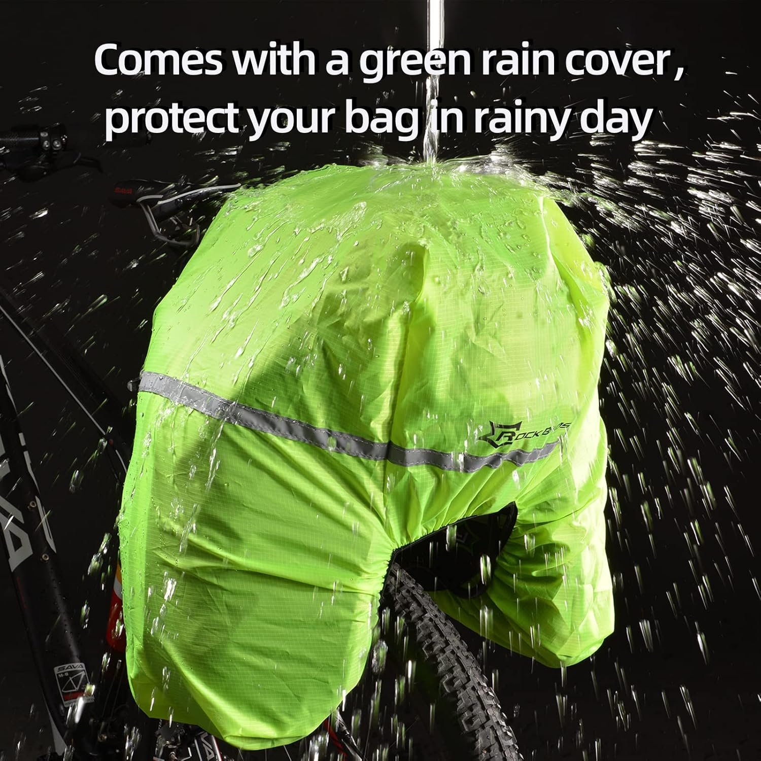 Versatile & Portable: Expandable double side bike panniers are hided by zippers and available when needed. You can unzip the expansion and fit clothes and shoes in the trunk bag. There are also shoulder and hand straps for carrying the rockbros bike bag with you.
