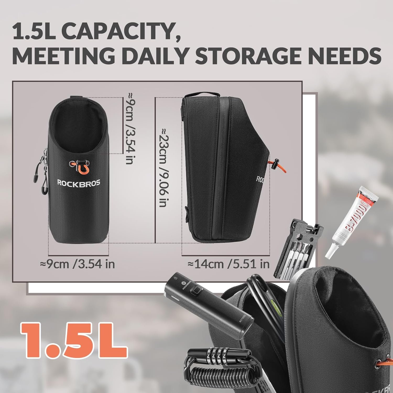 Easy Installation: With a strap design, this cycling bag is easy to install on various types of bikes, including folding bikes, scooters, and mountain bikes, providing a convenient storage solution.