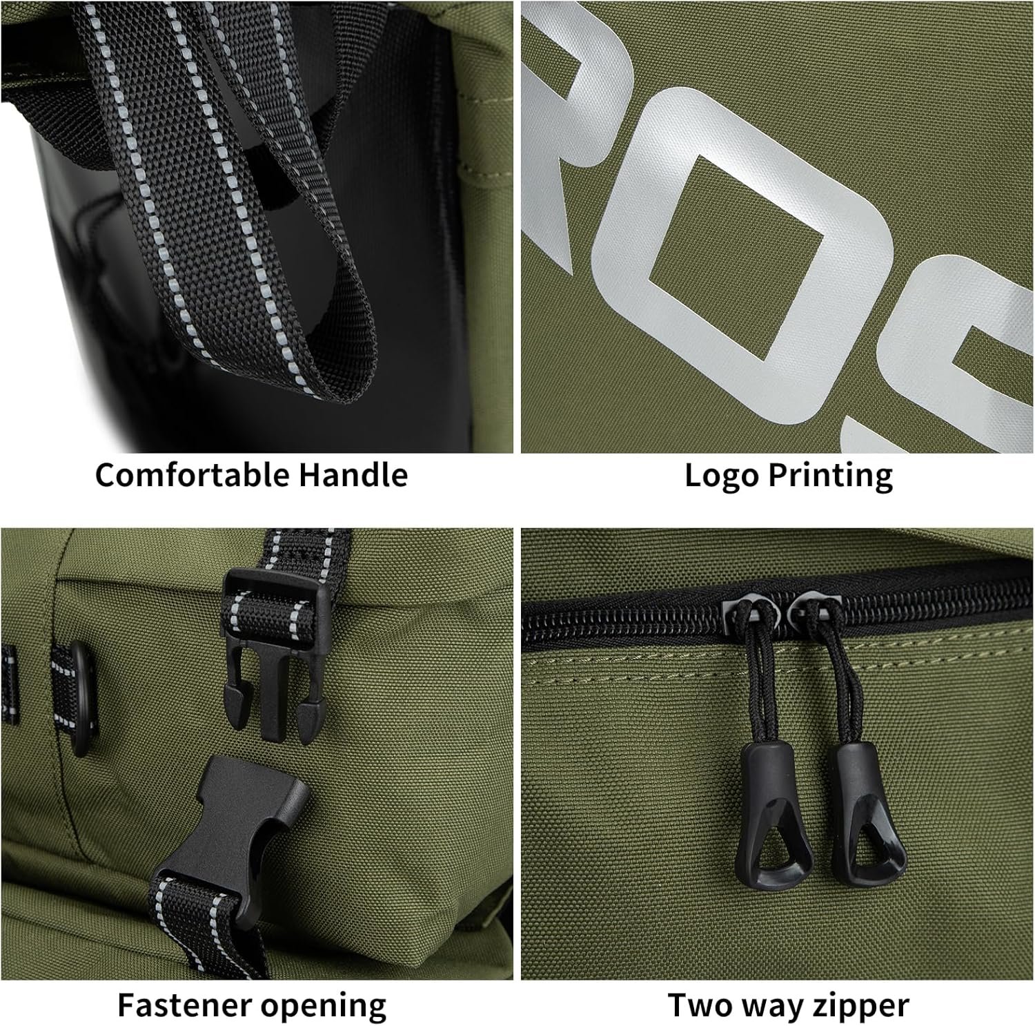 Waterproof function: This bike pannier is made of 900D Oxford cloth and has a roll-top closure design, which is super durable, tear-resistant, abrasion-resistant and heat-resistant, and the waterproof cover can make it waterproof when riding in rainy days