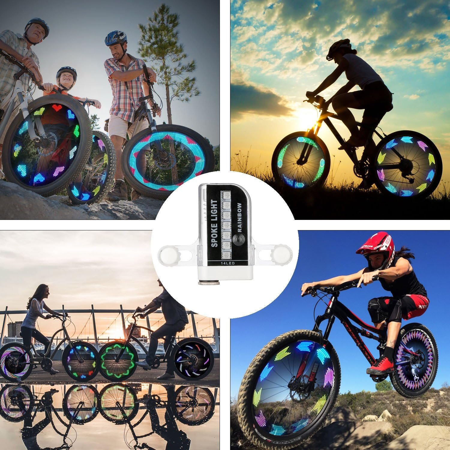 【ATTRACTIVE PATTERNS】Made of 14pcs colorful RGB LED lights. Ultra Bright in the night. It can flash 30 different kinds of patterns, each pattern will be changed every 4 seconds. Different speed, this bike wheel lights will have different effect show. Visible from all angles for ultimate safety and style.