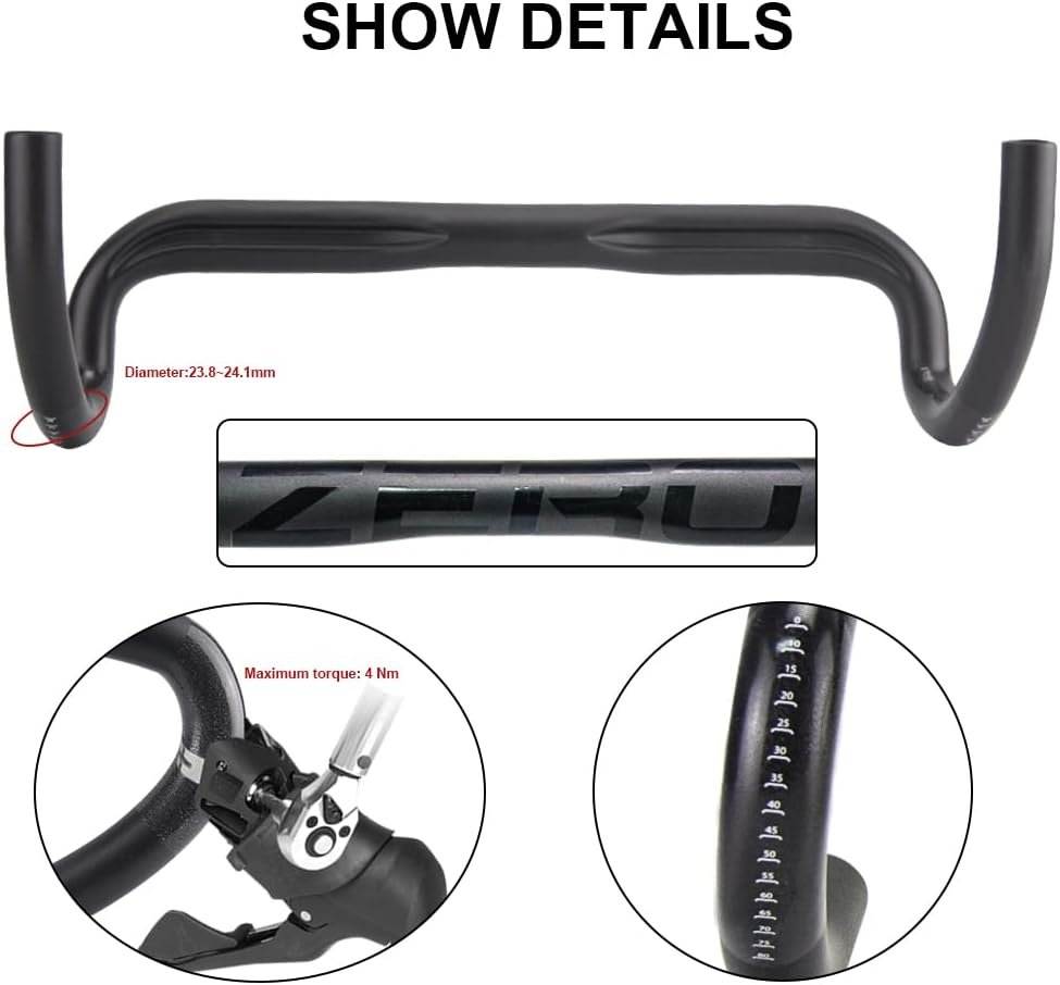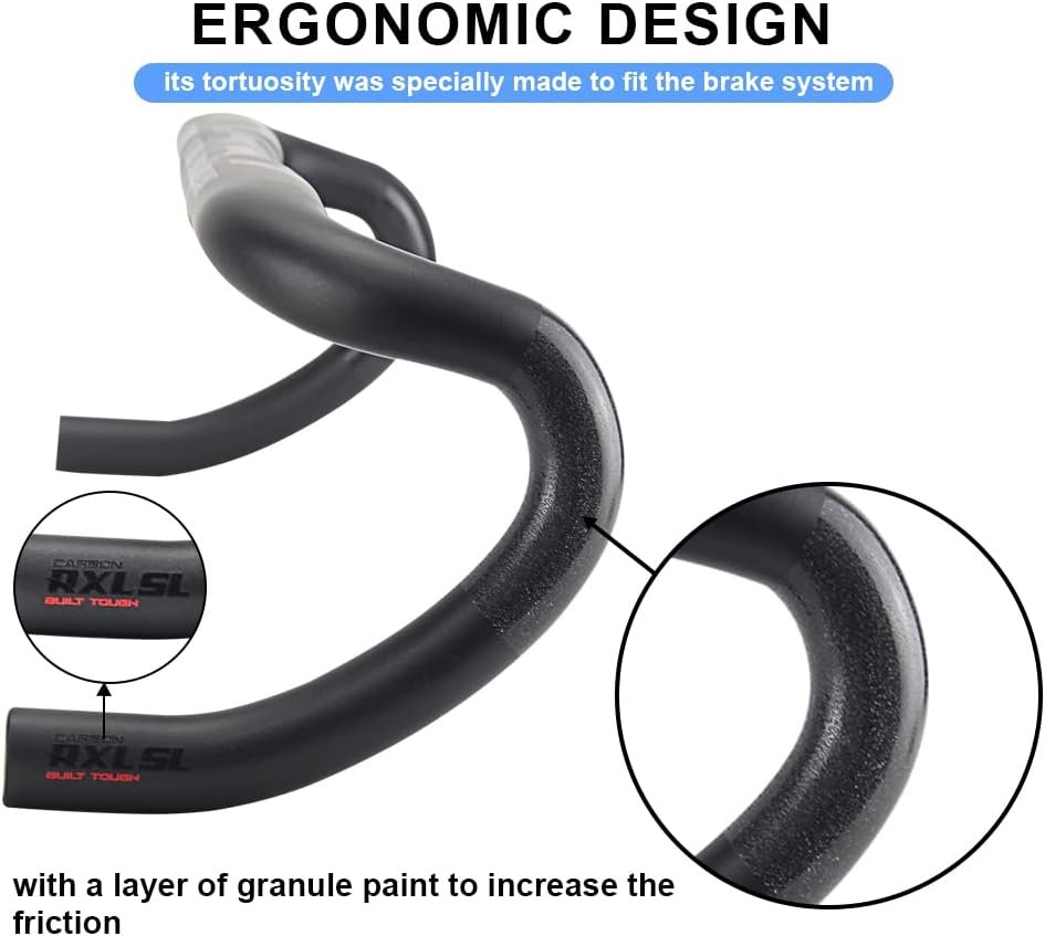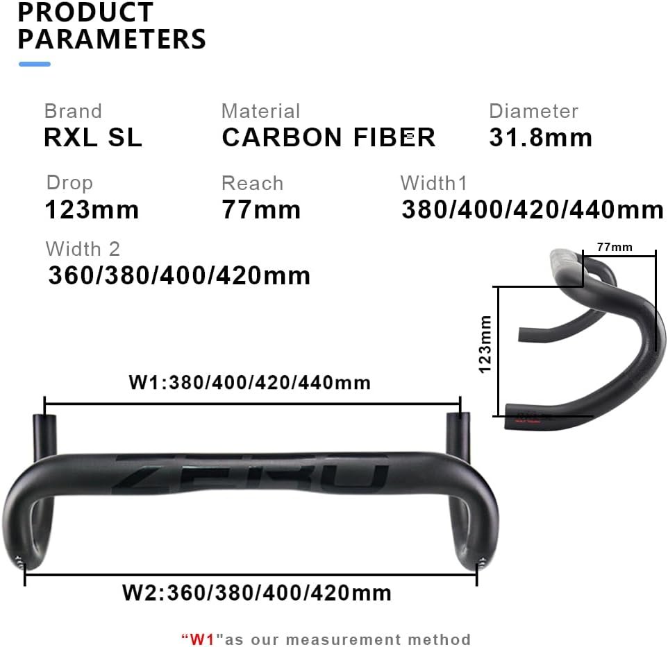 1.Carbon handlebars road bike brand: RXL SL; Weight:Approx 180g (420mm); Color: Black; Finish: UD Matte; drop bars handlebars diameter:31.8mm; Carbon handlebar width: 400/420/440mm; Drop:123mm; Reach:77mm; Torque:4Nm.