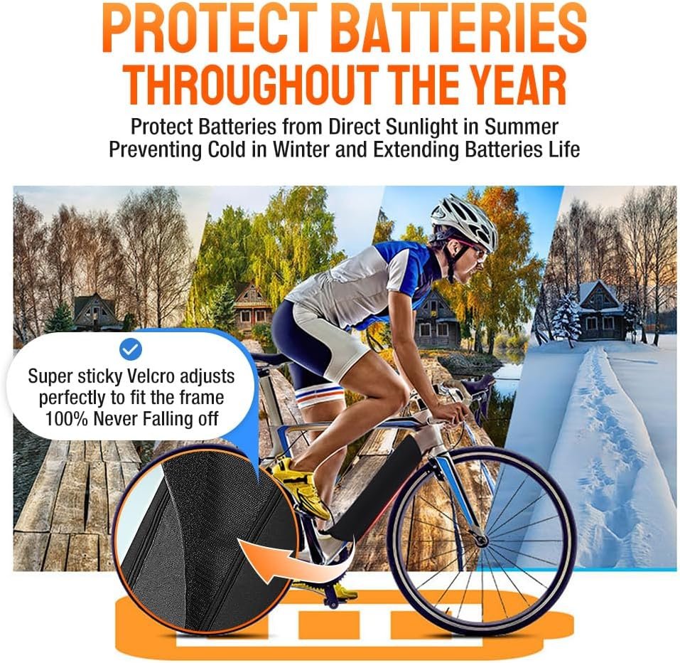 【Premium Material】 Our E-Bike Battery Protective Cover is made of high-quality neoprene and diving material, which is water-proof, lightweight and durable.