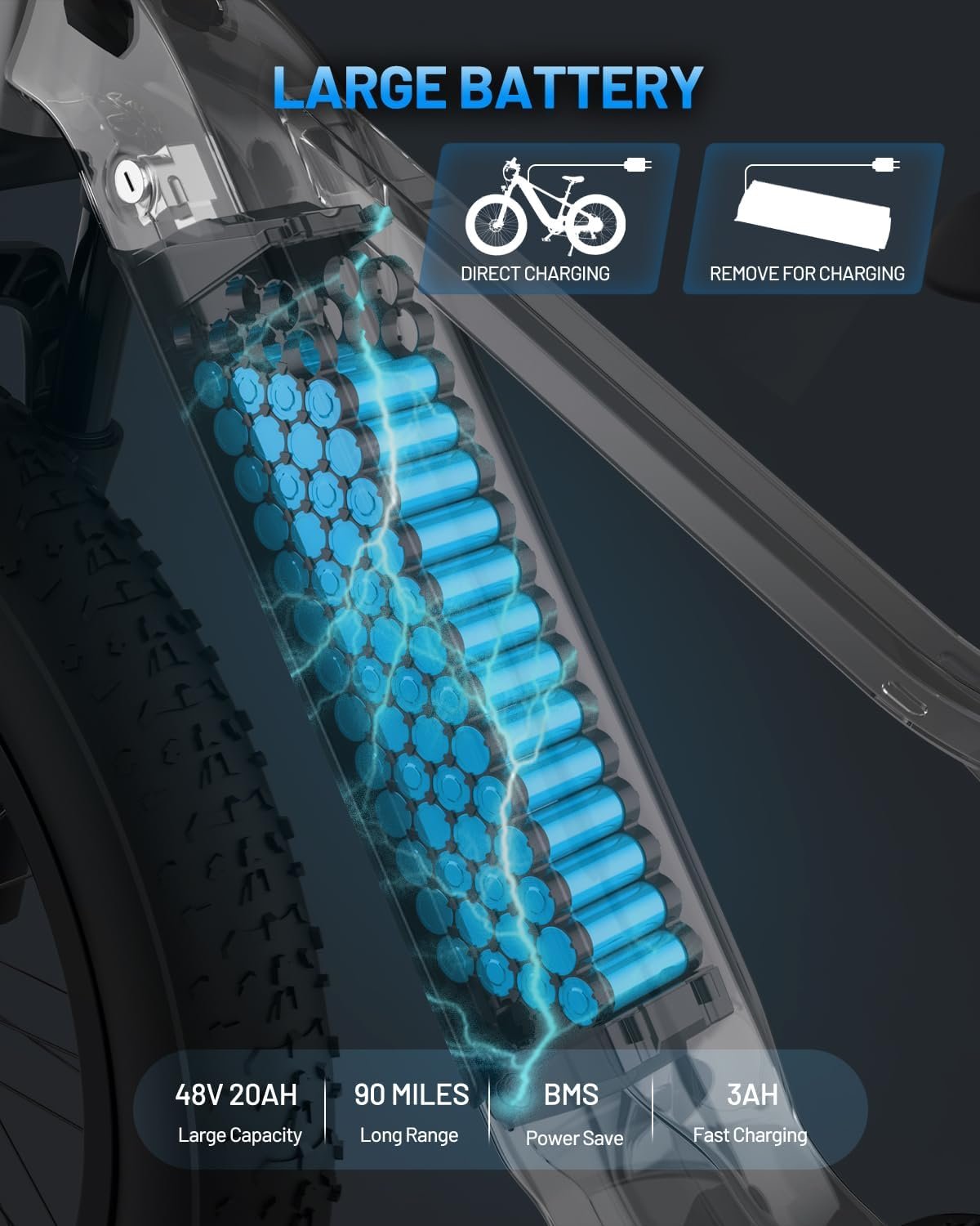 [Longer and Smoother Riding]The 48 V/20 AH large capacity battery combined with torque sensing,intelligent BMS system to ensure battery safety and power saving.Improves the ebike conversion efficiency of battery power and obtains a smoother overall ride.Up to 100 miles per charge