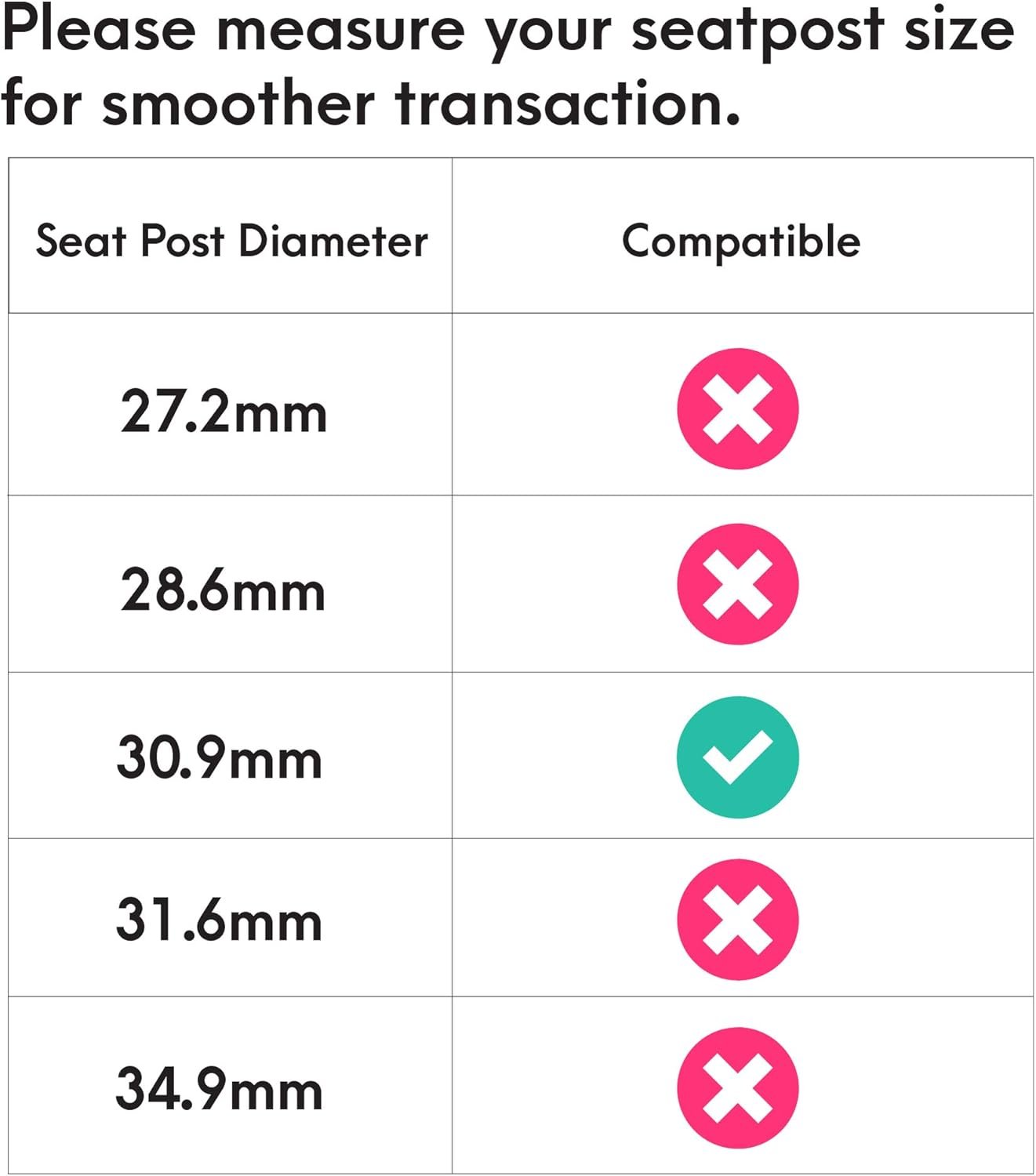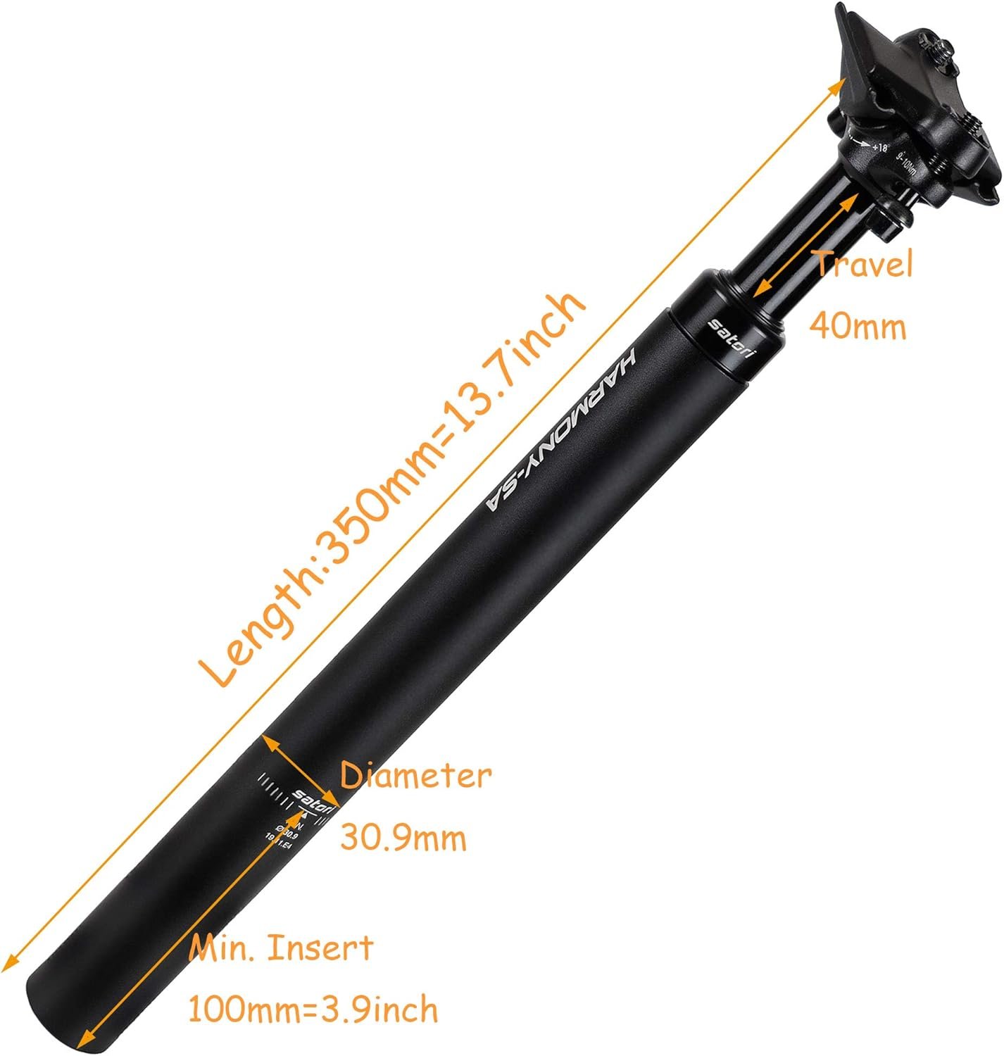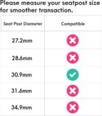 SIZE: Diameter: 30.9mm. Please make sure the inner diameter of your seat tube is before purchase. Minimum insert: 100mm. Important: This suspension seatpost can NOT be shortened, please figure out how deep your seat tube can accommodate the seatpost before making a purchase.