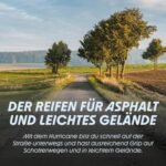 HURRICANE TIRE: rolls fast with its flat center and silent on asphalt. Sturdy shoulder studs offer good grip on forest roads and gravel creating excellent off-road qualities. Optimum microteeth on the shoulders ensure that every corner is safely taken. Hurricane is an excellent all-terrain tire for cyclists who want to be fast on the road and perform well off-road. The new Hurricane is now also available with DoubleDefense technology for the highest demands of puncture protection.