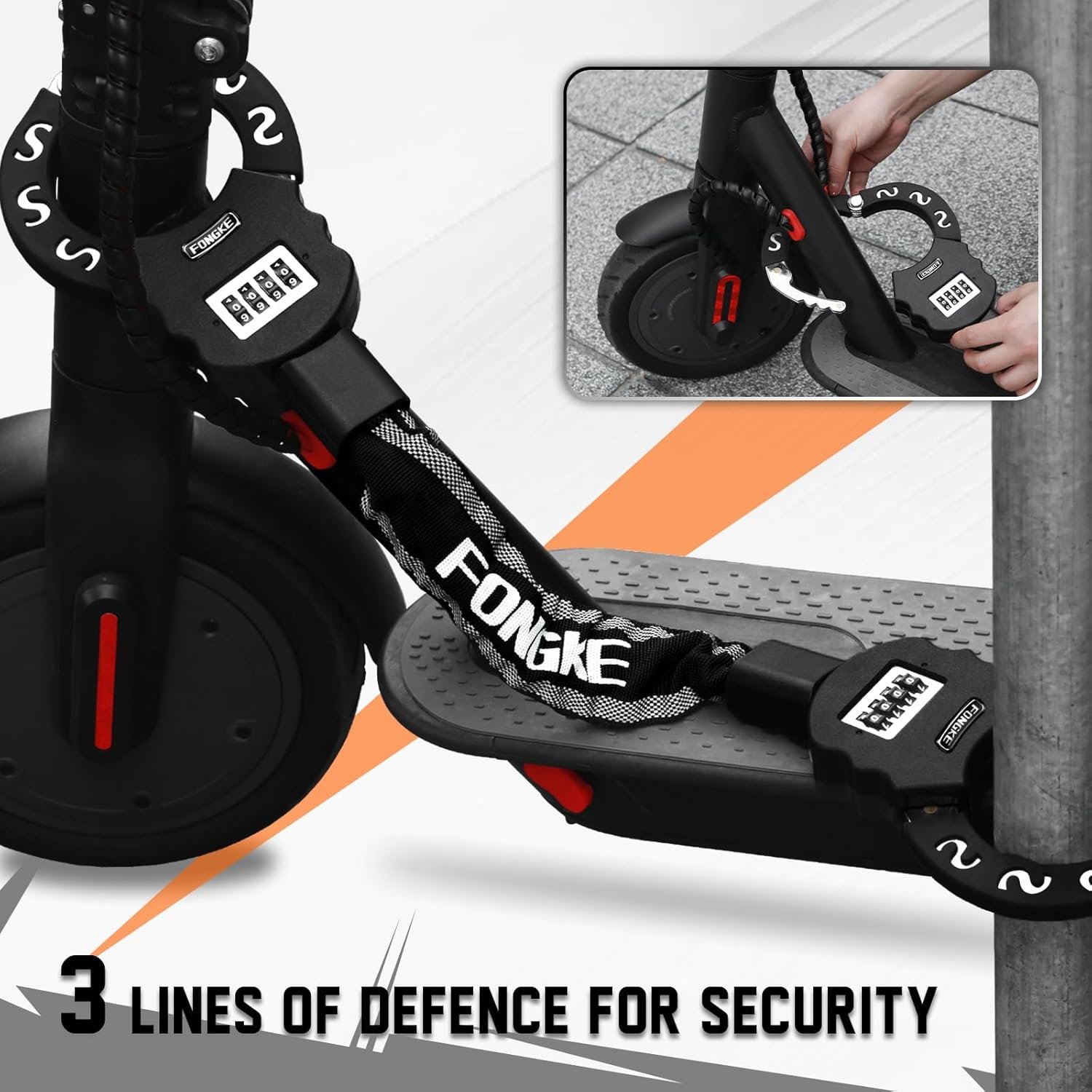 KEYLESS CODE LOCK: We equip the electric scooter with a high quality and convenient heavy-duty combination lock, the sturdy combination lock brings you maximum security.