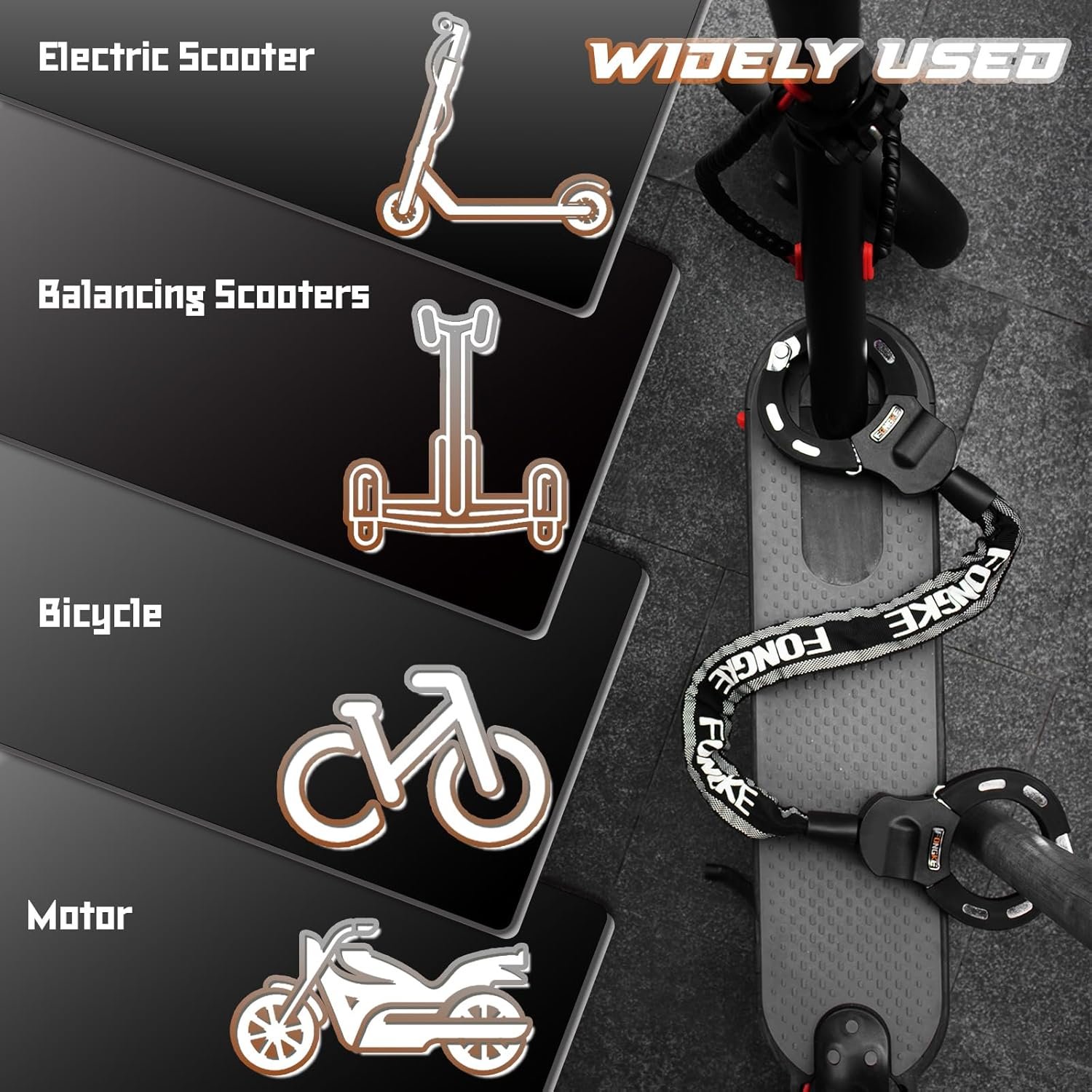 Multiple Uses: The electric scooter lock can be used to lock your scooter, as well as bicycles, e-bikes, ladders, balance bikes and other items that can be secured to fence posts.