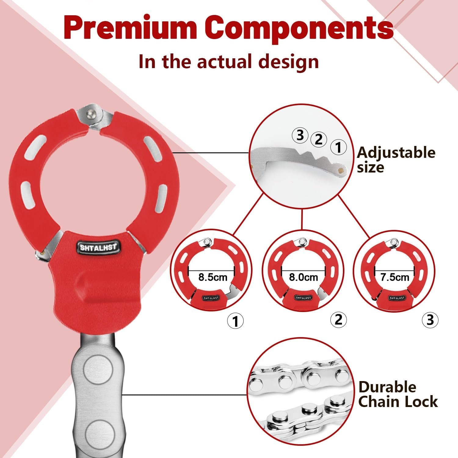 [ULTIMATE SECURITY & DURABILITY] Crafted from premium alloy steel, this electric scooter lock guarantees unparalleled security and durability. Its heat-treated construction offers exceptional resistance to hydraulic shear damage, ensuring your precious scooter stays protected at all times. The rust-resistant, pry-resistant zinc alloy lock core adds an extra layer of security, giving you peace of mind wherever you go