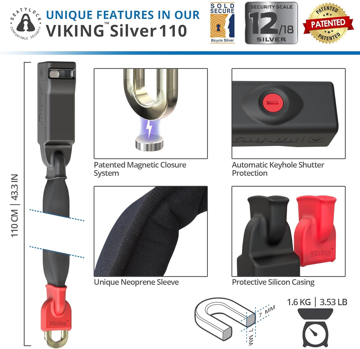 Seatylock Viking Bike Chain Lock with Key – Magnetic Patented Sold Secure Silver Rated – Heavy Duty Anti Theft – Smart Ultra Security Bicycle Lock (43.3 Inch)