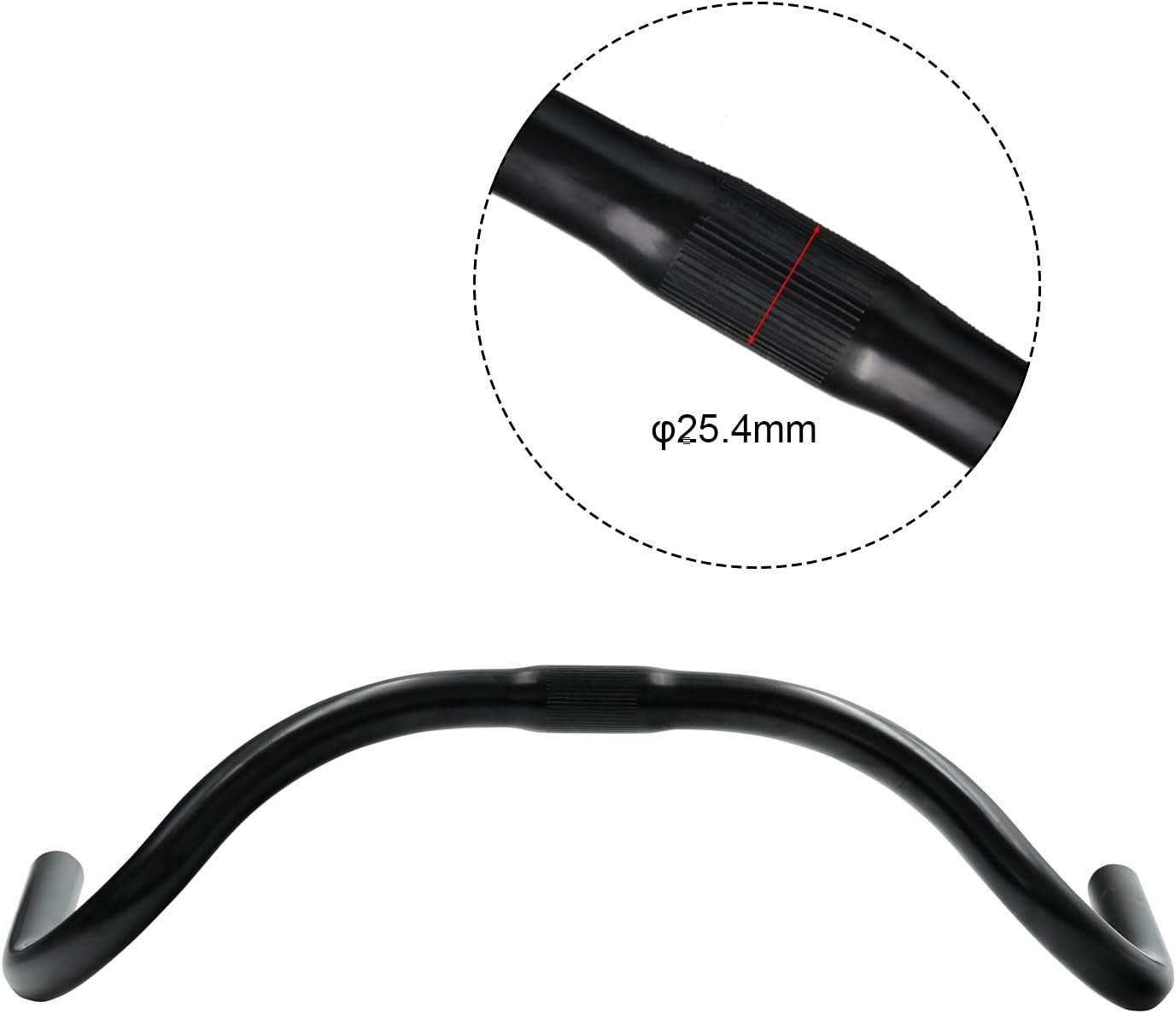 Size Clamp diameter (the middle of the handlebar):25.4mm Handlebar Width:440mm/17.5inch Bar end outer diameter:22.2mm Specifications Material:Aluminum Alloy Use: road bike, leisure bike Package included 1 X Bike Handlebar