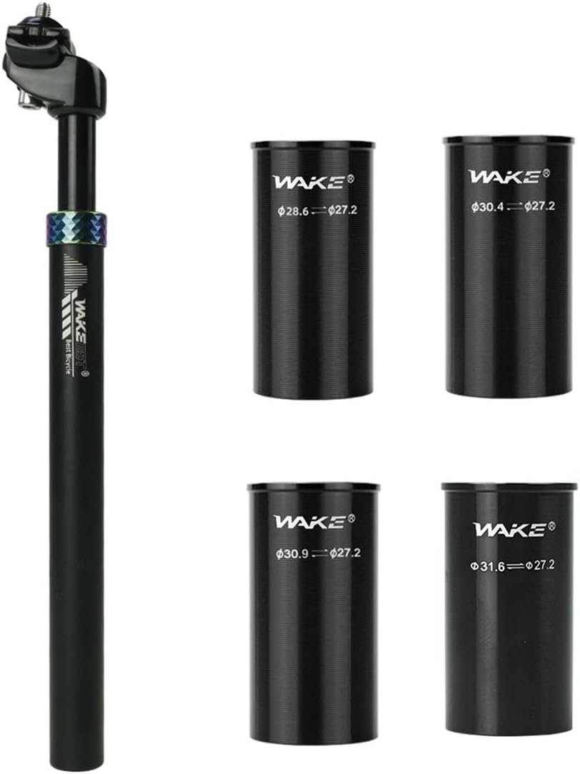 【Include 4 Size Seatpost Spacers】We have added 4 size of seatpost spacers, respectively 27.2mm to 28.6mm, 27.2mm to 30.4mm, 27.2mm to 30.9mm, 27.2mm to 31.6mm, Make this seatpost suitable for more sizes bicycle, No longer have to worry about buying the wrong size and bring the trouble