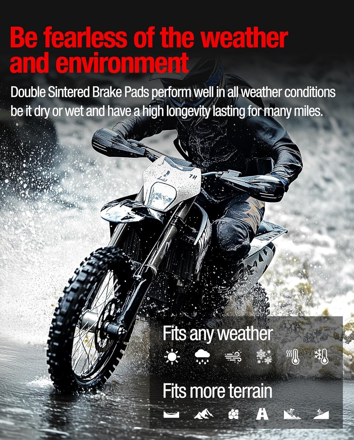 Optimized for Surron Models:Specifically designed to fit Surron Ultra Bee and Storm Bee bikes, these brake pads align perfectly with the original equipment manufacturer’s specifications. This ensures optimal compatibility and performance, reducing the likelihood of misfit issues that can affect braking quality.