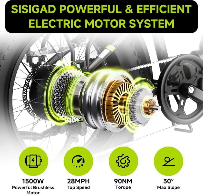 【Long-life battery】: The electric bicycle is equipped with a 48V/500 Wh removable large battery. After charging for 5-6 hours, the electric bicycle for adults can travel 60-80 miles with pedal assist, which is perfect for travel or daily commuting. The batteries used by SISIGAD have advanced overheating, overvoltage, and overcharge protection functions, providing reliable performance and longer service life.