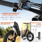 【7-speed gears and 5-speed shifting】The electric bikes for adults have professional 7-speed gears and 5-speed shifting, allowing you to adjust the gear according to different terrains and conditions to increase riding pleasure. This e bikes for adults electric uses an aluminum alloy frame, dual lights, dual disc brakes and front fork dual suspension shock absorption, providing stronger braking force and reduced inertia, making it more sturdy