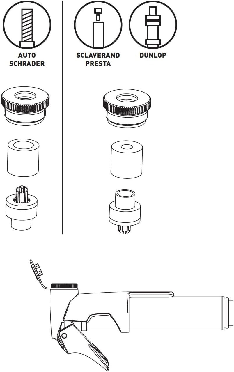 With the clamp lever, reversible valve head can be connected to both Presta and Schrader valves