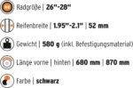 Fits 27.5″/650b/700c/28″ x max tire width 52mm