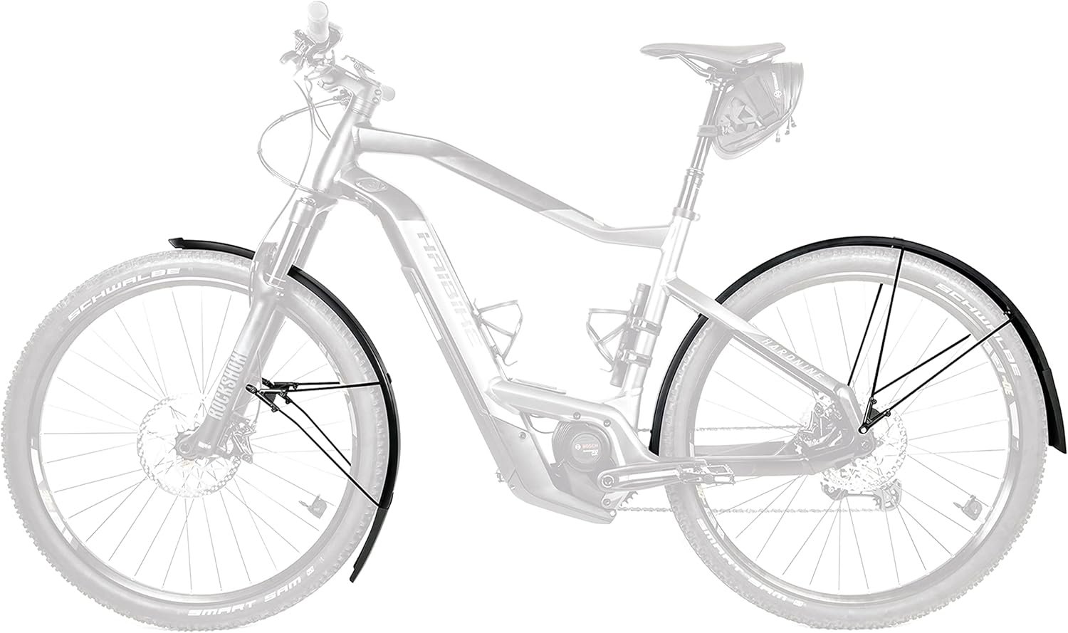 FENDER FEATURES-Fender profile lengths for STYLE Fenders are 960mm front and 1300mm rear, including spoiler. Bluemels style fenders are matte black in color and feature a special squared off, stealthy fender profile shape and matte black stays and hardware. Features SKS’s V-Adapter ESC Safety Release System, which allows the fender stays to uncouple should a branch or other debris get caught in the spokes. This is an extremely important safety feature.
