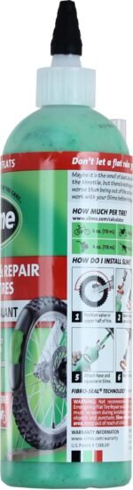 Slime Tube Sealant seeks out and instantly seals punctures in your tubes up to 1/8″ (3mm) using Fibro-Seal Technology