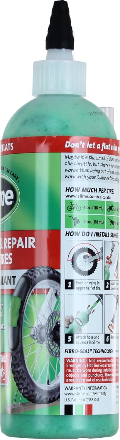 Use Slime in an emergency to repair/seal punctures and slow leaks on all Bicycles, dirt bikes, wheelbarrows and strollers