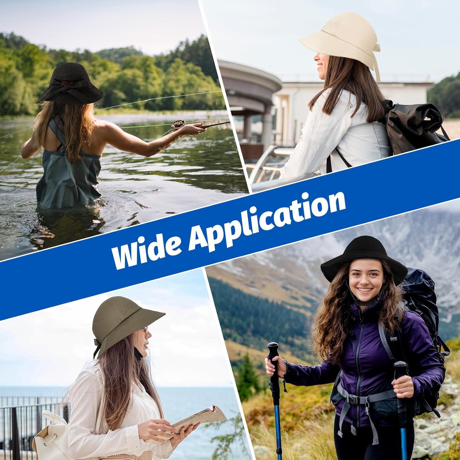 . 【Hat Shaped Helmet】: The Hat Type Helmet for women, wide brim design, provides great sun protection for hot summer.