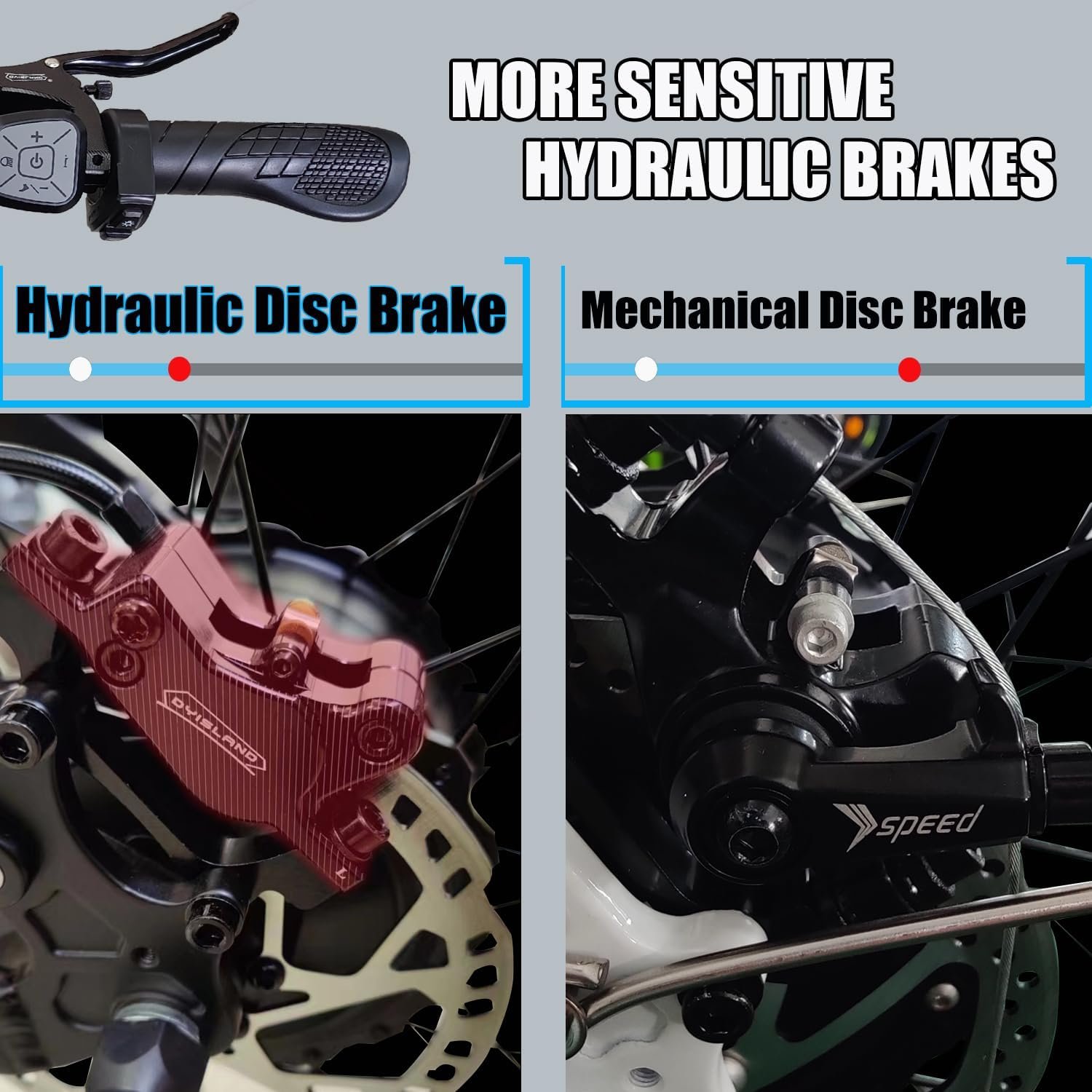 【Capacity and Safety】: Supports riders up to 400lbs (approx. 180kg) and caters to heights ranging from 5’7” to 6’7” (170cm to 195cm). Enhanced safety features include full hydraulic brakes, offering superior braking power, responsiveness, and precision compared to traditional cable pull brakes. The hydraulic system minimizes maintenance needs, provides consistent braking performance in various conditions, and ensures improved safety in emergency braking situations.