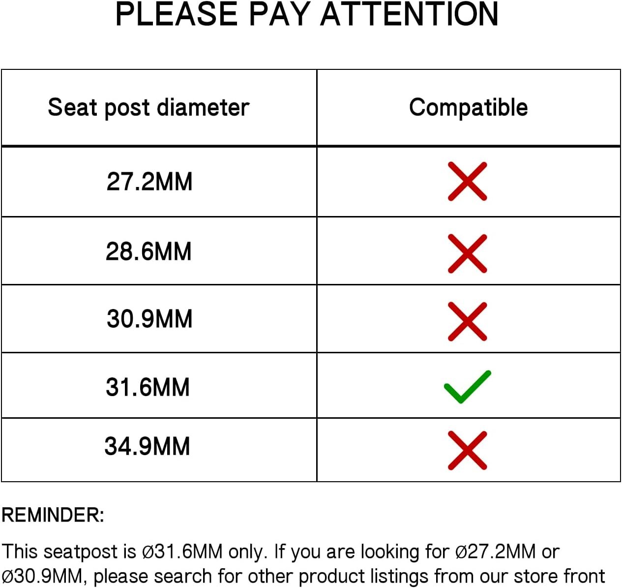 31.6mm x 350mm, PLEASE DOUBLE CHECK YOUR SEAT TUBE SIZE BEFORE PLACING ORDER.