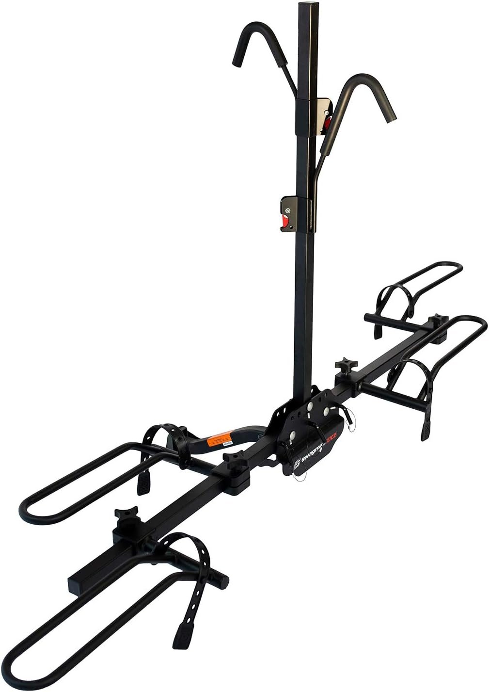 VERSATILE: Easily transports up to 2 bikes and is compatible with a Class 2 or higher, 1- 1/4″ and 2″ hitch receiver. Fits most frame sizes, shapes and style (fits 12″ to 29″ tire sizes). Maximum weight capacity of 35Ibs. per bike