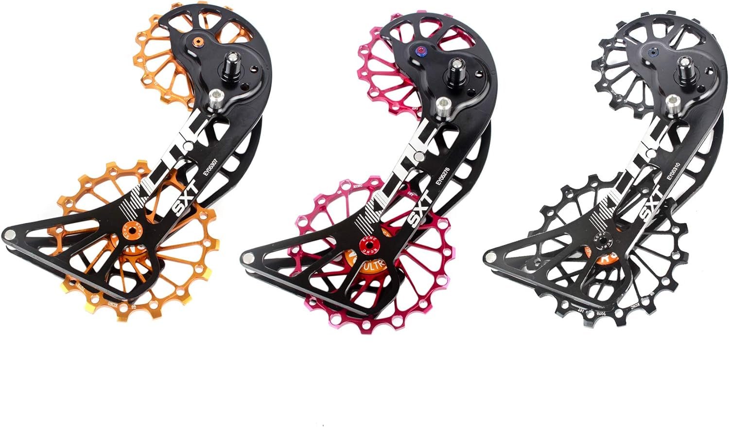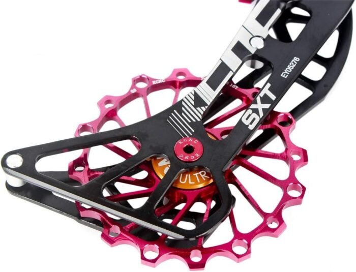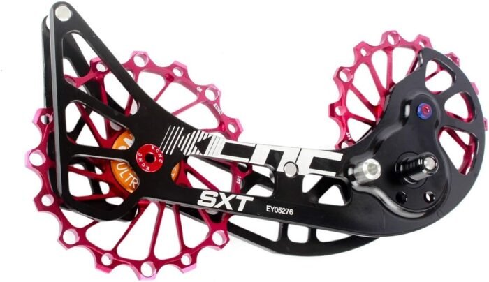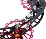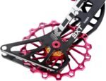 NARROW WIDE PULLEY&DURABLE CHAIN RETENTION-The OSPW for Shimano features a narrow wide tooth profile to ensure durable chain retention.The system consists of Top 14t & Bottom 16t alloy pulley wheels fitted with low friction bearings and a lightweight cage made from 7075 Alloy.Coated bearings prolong the lifetime even further.The oversized pulley wheels have 3-5 times longer lifetime than the commonly used standard pulleys on the market.