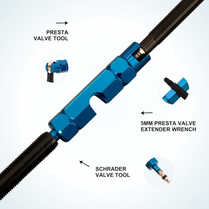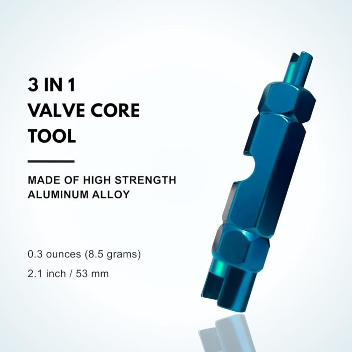 𝗛𝗶𝗴𝗵-𝗤𝘂𝗮𝗹𝗶𝘁𝘆 𝗠𝗮𝘁𝗲𝗿𝗶𝗮𝗹𝘀: The Stainless Steel Valve Remover Tool is constructed from stainless S2 steel with an electroplated mirror finish, while the 3-IN-1 Presta Schrader valve is precision NC machined from high-strength aluminum, anodized in blue for a long-lasting, durable finish, ensuring exceptional corrosion resistance and durability. These tools are finely crafted, oil-resistant, impact-resistant, and waterproof, making them both resilient and easy to use.