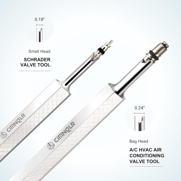 𝗪𝗲𝗹𝗹-𝗘𝗻𝗴𝗶𝗻𝗲𝗲𝗿𝗲𝗱: The Stainless Steel Valve Remover Tool features a dual-head design with a small head for tire-related applications and a larger head for air conditioning systems. Additionally, it includes a 3-IN-1 valve core removal tool, designed for effortless Presta and Schrader valve installation and removal.