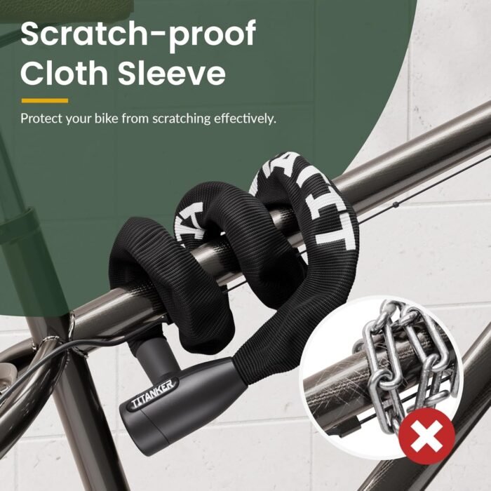 Protective Cloth Sleeve & Dust Cover: Chain is enclosed in protective cloth sleeve, which effectively protects the bike lock chain from rusting and scratching