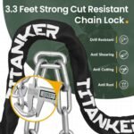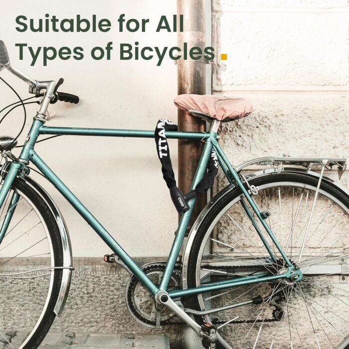 Secure & Portable: The key can only be pulled out after the bike chain lock is locked, which prevents the key from being lost. Titanker bike lock comes with 2 keys. You can take one of the keys to use in daily life, and you can leave another key at home in case you accidentally lose one