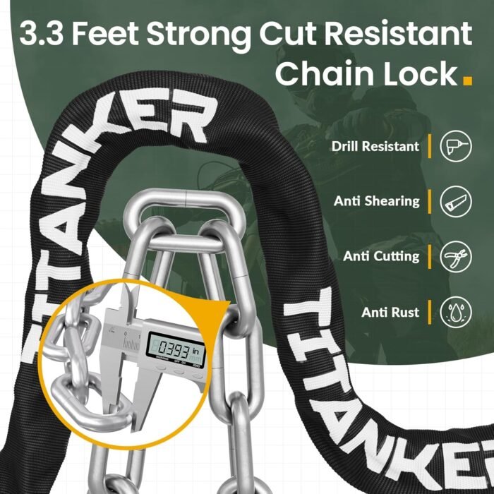 Heavy Duty & High Quality: With 10mm thicker security heavy-duty chain links, our bike lock is made of heavy-duty steel known for its cut-resistance. Lubricate the bike chain lock hole and keyhole regularly, this will prolong the lock’s service time
