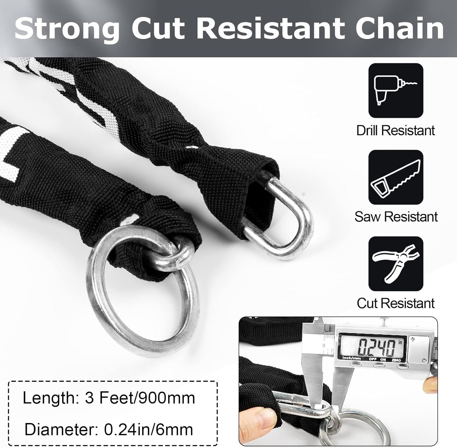 Anti-scratch Sleeve: The chain lock is wrapped in a nylon sleeve that is scratch-proof and resistant to wear and tear. It can protect your bike and chain from scratches.