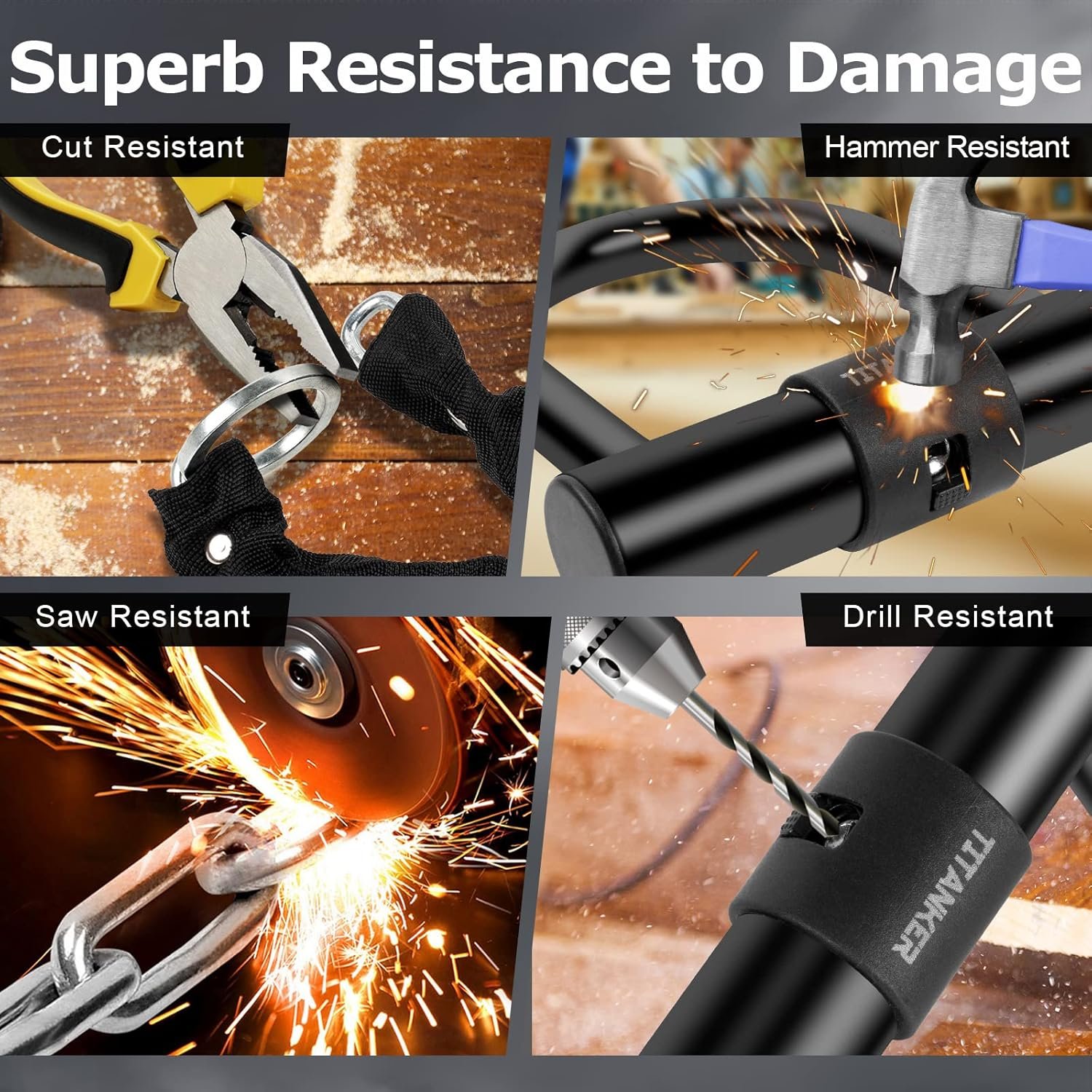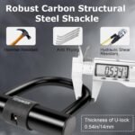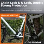 Strong Cut Resistant and High Security: This bike lock consists of a 3ft chain lock and a robust U-lock. 6mm square chain which is sturdy and durable and 14mm U-lock made of carbon structural steel which is strong resistance to cuts and lever attacks, provide double protection to your bike. Weight:2.18 pounds.
