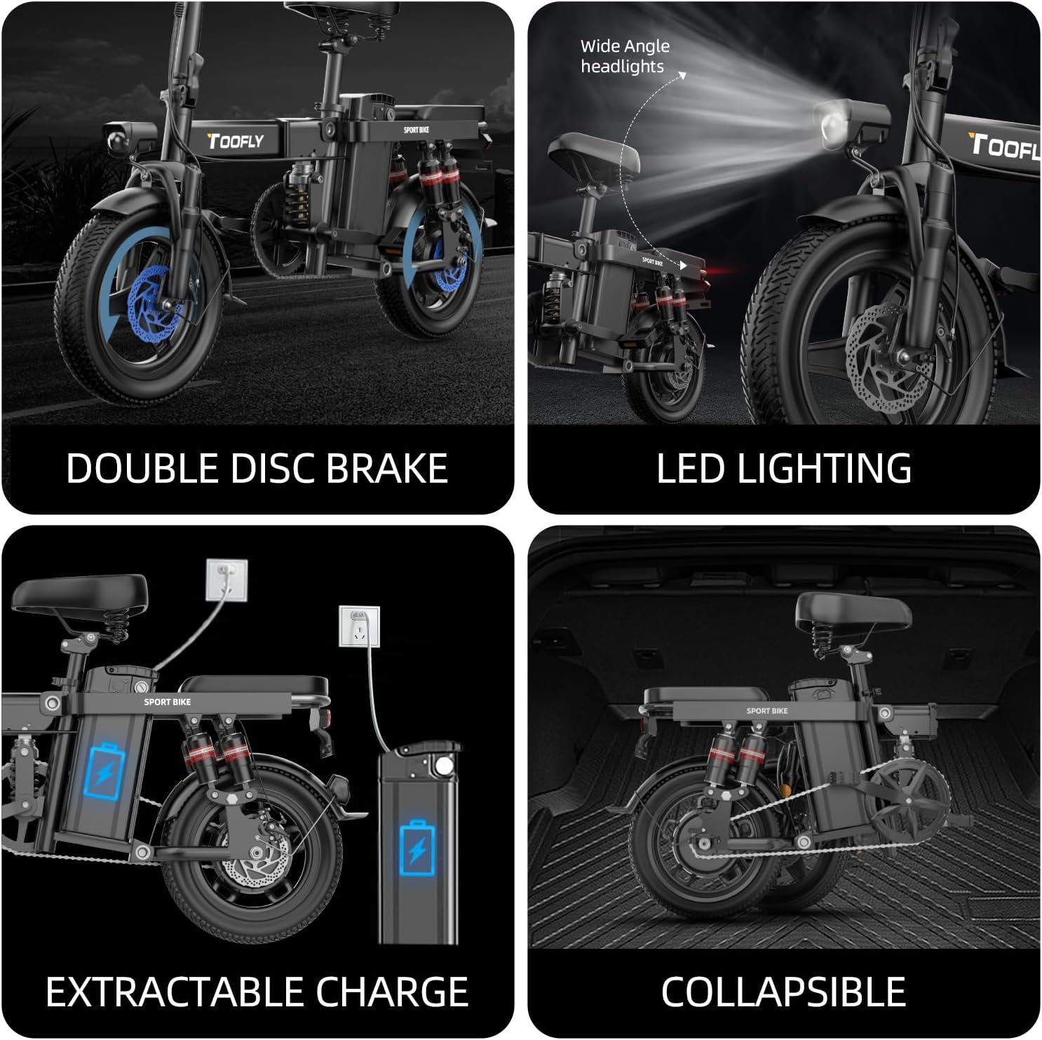 【400W Powerful Motor】400W Powerful electric bikes with a 48V built-in rechargeable Lithium-Ion battery (5-7h charging time), the Toofly e-bike provides stronger electric power with speed reaching up to 20MPH. Providing strong power and climbing capabilities for the electric bicycle