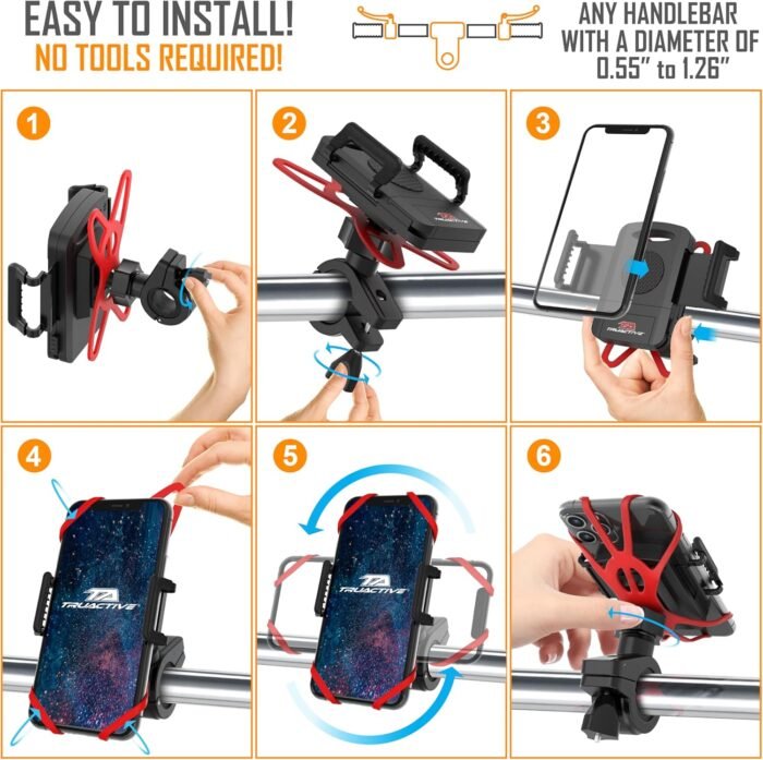 ✔️ STAND OUT FROM THE CROWD WITH TRUACTIVE – If you are an enthusiast rider who enjoys unlimited access to the smartphone during outdoor adventures, you need the patented bike phone holder handlebar by TruActive! Upgrade your bike and make your ride more enjoyable and comfortable with this awesome bicycle phone holder! Tested, and perfected by extreme riders and qualified engineers to ensure the quality and durability of every part!