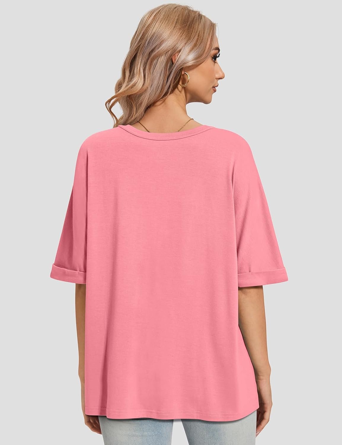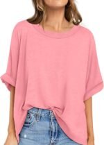 Customers appreciate the shirt’s loose, comfortable fit for yoga, hiking, or casual days out. They like the soft, roomy material that feels comfortable and cool. The style is described as pretty and perfect lounging shirts. The color is described as perfect and doesn’t fade. Customers also appreciate the weight and washability. However, some customers have mixed opinions on the material thickness.