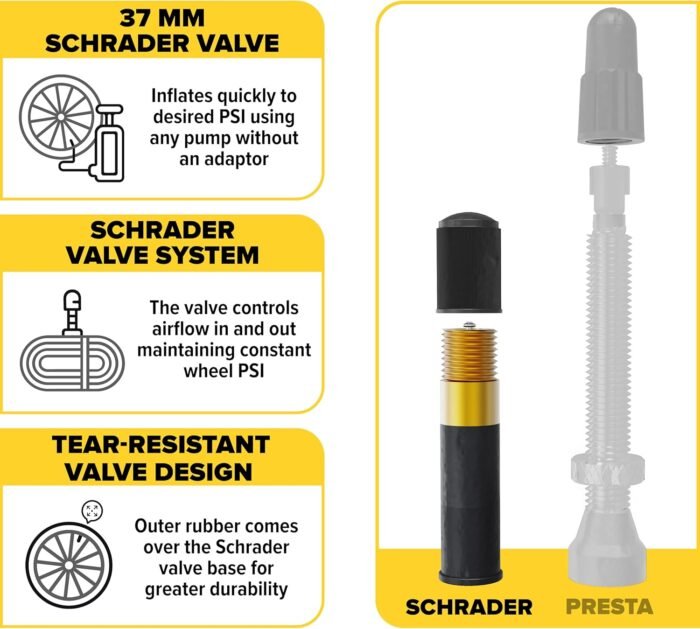 Easy Installation: Featuring a user-friendly 32mm Schrader valve, our inner tube kit has two tire levers which allow for quick inflation and deflation, making tire maintenance a breeze for riders of all skill levels.