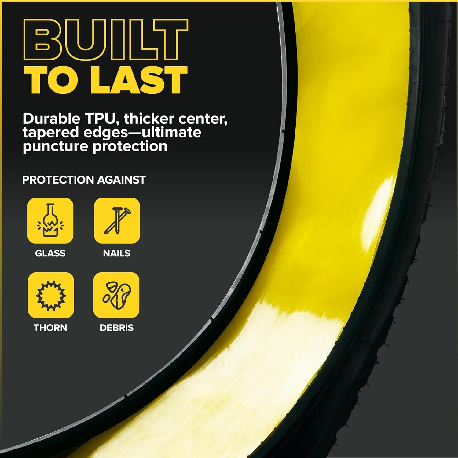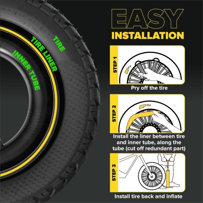 Wide Compatibility: These versatile liners fit a range of wheel sizes including 20”, 24”, 26” and accommodate tire widths from 3.0, 4.0 to 4.8 inches. Designed for Custom Sizing, easily trim or cut these bicycle liners to accommodate smaller wheels, ensuring a personalized fit for enhanced tire protection