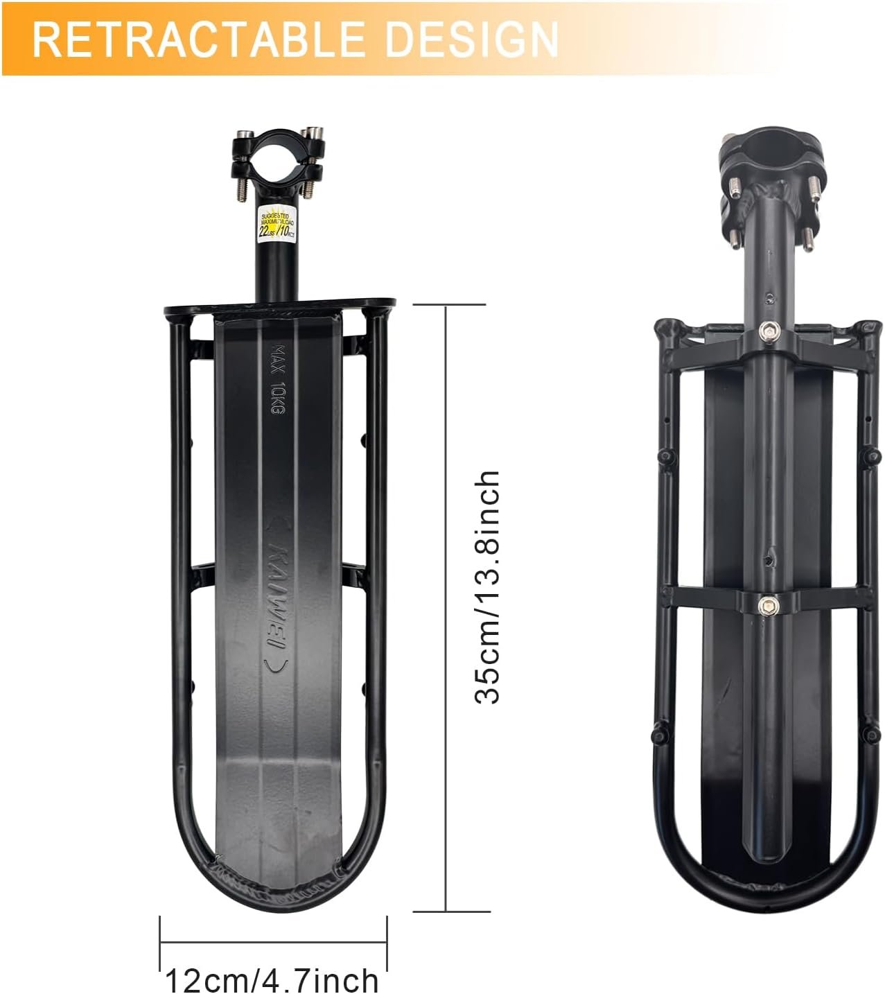 Rack length:13.8inch~19.7inch (adjustable via adjusting screws under the rack)Width:4.7inchFit Seat Post Diameter:1.01inch ~ 1.3 inch