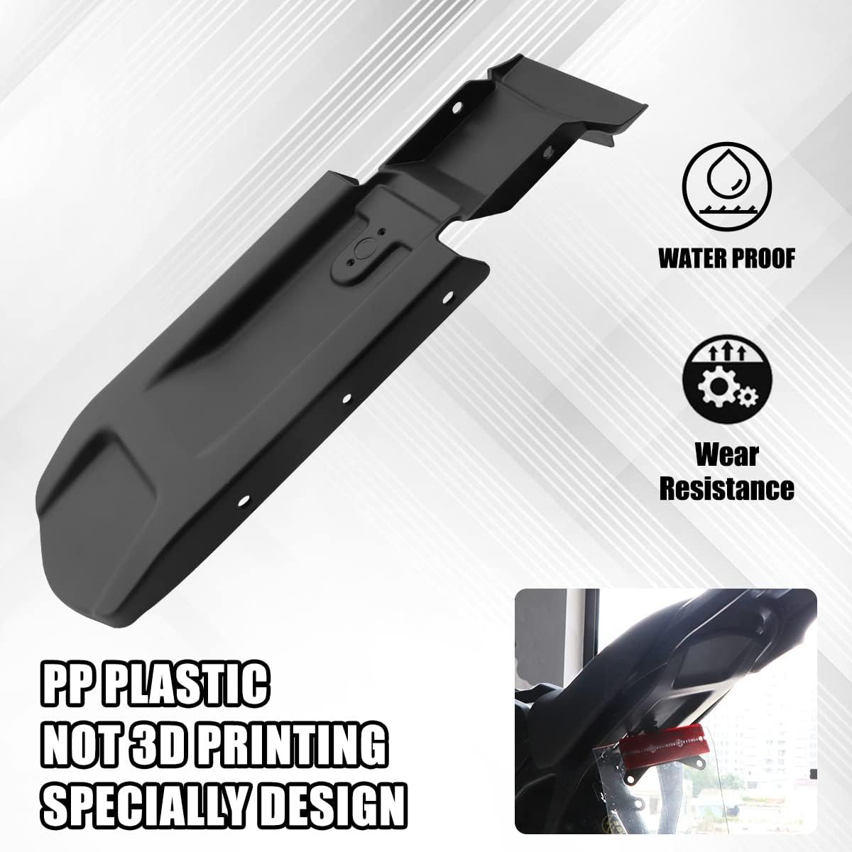 【Powerful 】: When we ride on hills and soil, the original fender is not satisfactory, because it is no wear resistance and prone to scratches when encountering mud stones,and difficult to clean that not better protect the base. Especially during and after rainy days. Therefore, we developed a more helpful product “Upgraded Rear Fender Inner Plate”,fits your bike perfectly