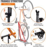 Triangular Structure & Durable: The rear wheel is securely held by two V-shaped plastic brackets. These brackets not only prevent tire damage, but their distance can be adjusted to accommodate various tire sizes. Together with the seatpost, they form a sturdy triangular structure. Two Velcro fasteners secure the front wheel and seatpost, making the bike more stable. The bike stand made of high quality black powder coated steel, it is stable, durable, rust-proof and long-lasting for years.