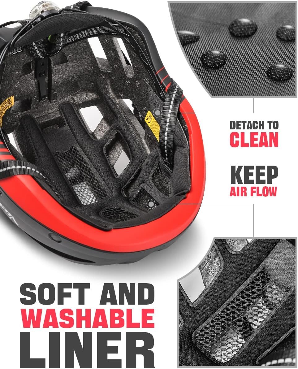 Bright Helmet Rear Light: Our bike helmet with light in the back, it has 3 flashing mode light- steady, slow flashing and fast flashing. It is necessary to equip taillights for night cycling, it will help riders behind you clearly recognize your direction and warning the car.