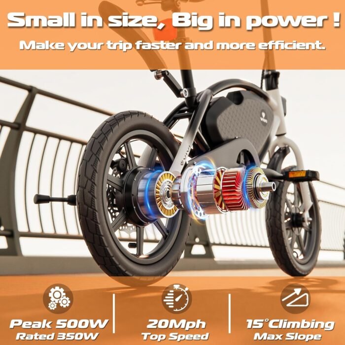 Efficient Performance – Vivi PONY01 e-bike packs a punch with its 500W peak motor and 48V 7.8Ah battery. You can hit speeds up to 20mph.